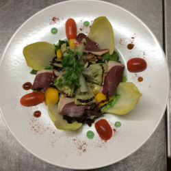 carte, toutes nos viandes sont françaises. Nos fromages proviennent de la fromagerie Sancey-Richard à Métabief , notre charcuterie de la Maison Grésard à Malbuisson, nos légumes proviennent essentiellement du Jardin de Beauregard à Labergement-Sainte-Marie ...